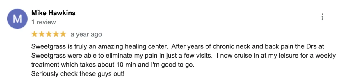 We've helped hundreds of people in your area get to the bottom of their aches and pains, and we would love to help you too.