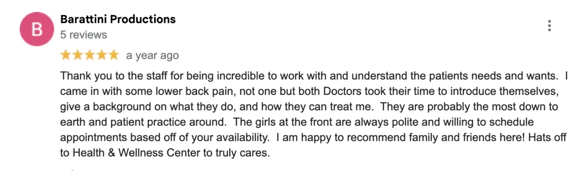 If we are not the right facility for you, we will refer you to one of our medical or chiropractic colleagues who is best equipped to care for you. We do not recommend treatment you do not need.