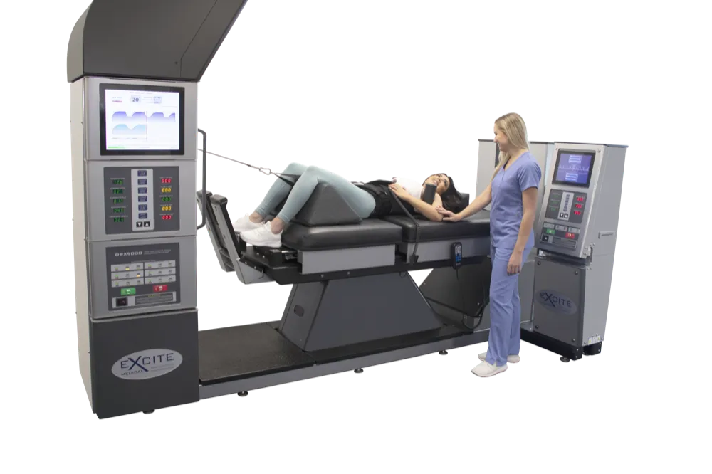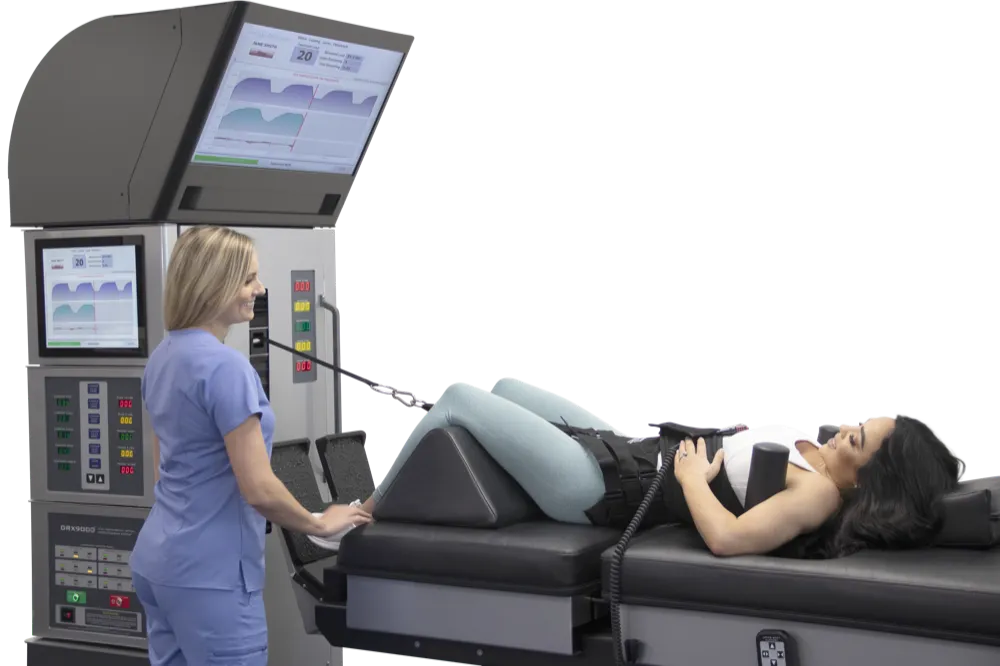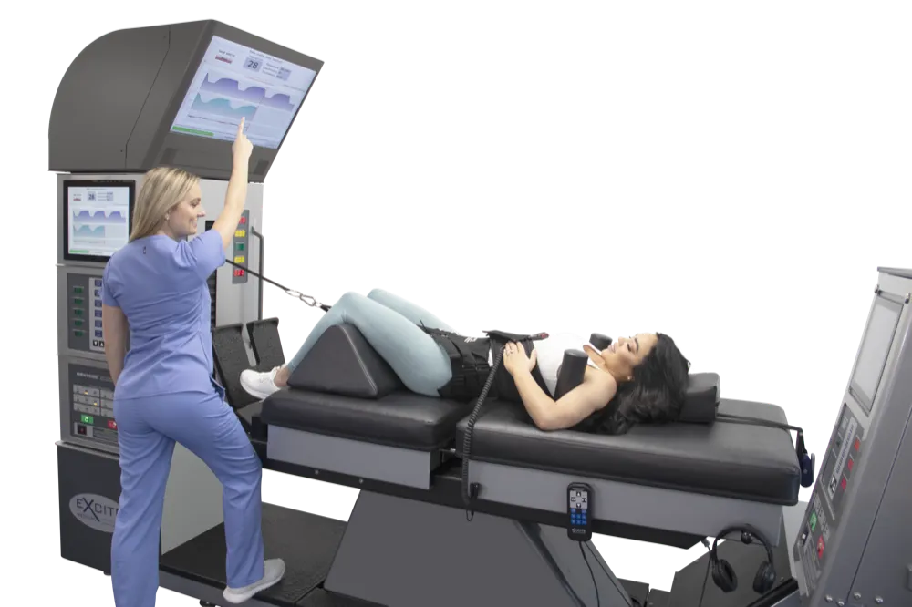 Decompression therapy is a breakthrough NON SURGICAL pain relief treatment for back and neck pain. Spinal decompression works to stretch the spine in order to create negative pressure and space within the disc to allow disc fluid to move back into the space. Your spine can then receive more nutrients and heal itself quickly & effectively.